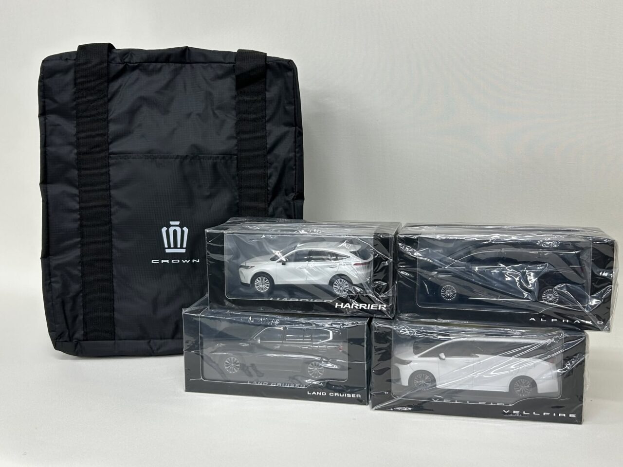 1/30サイズミニカー4台(ランドクルーザー300/アルファード/ヴェルファイア/ハリアー)&クラウンロゴ入り保温保冷リュック型バッグのSPセットです!